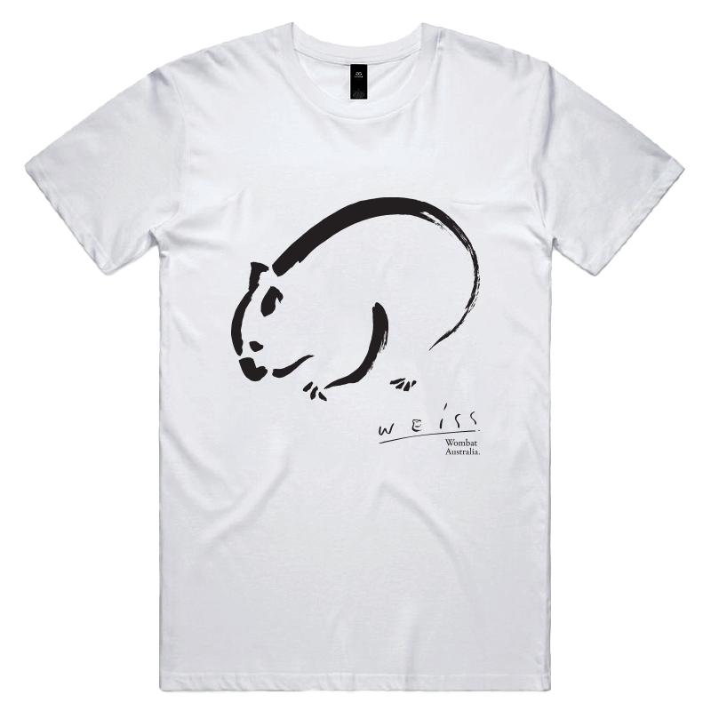 The popular and classic calligraphy style Wombat (Wally) is printed on a 100% soft cotton tee.